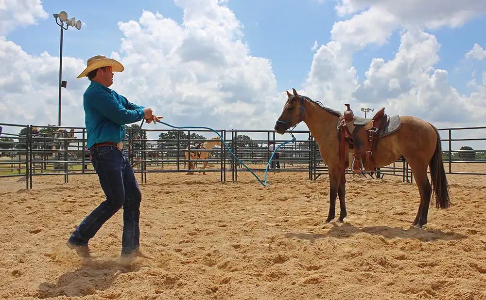 This year’s Colt Starting Clinic provided a great reminder about how important it is to properly adjust the back cinch. When I saddle a horse for the first time, he’s allowed to buck as much and as hard as he wants. He can do whatever he wants to try to get that saddle off his back. I do this because I want him to realize that no matter how hard he bucks, the saddle isn’t going anywhere; it’s staying right on his back.