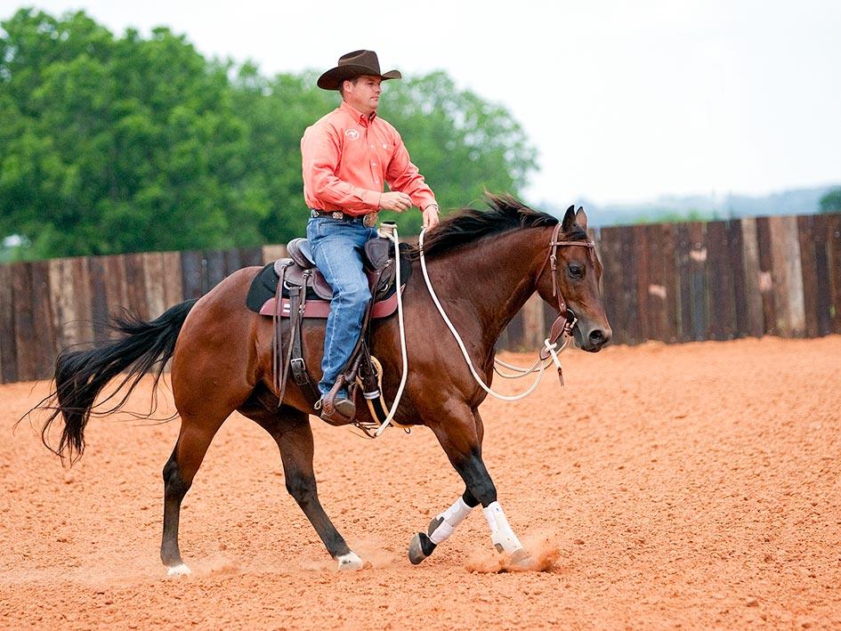 That’s a hard concept for a lot of people to grasp because we human beings love to micromanage our horse’s feet. But if you want a truly well-broke, responsive horse, you need to teach him to be responsible for his own feet. When I worked for Ian, he told me that when you’re cueing the horse to do something, you always ask, insist and then enforce. Regardless of how you phrase it, the real goal is to ask with the least amount of pressure and then increase that pressure, until you get the response you are looking for. You start by giving the horse the lightest cue possible. In this case, you’re politely asking him to go forward off a gentle squeeze of your legs. If he ignores you, then insist that he goes forward. That’s where the cluck comes in. “Cluck, cluck—hey, I’m asking you to move your feet. If you don’t, you’re going to feel uncomfortable.” If the horse chooses to ignore you still, then you enforce your cue by spanking, gradually increasing the pressure until he responds. Always ask and then tell. One day when you ask him, there will be no need to tell him.