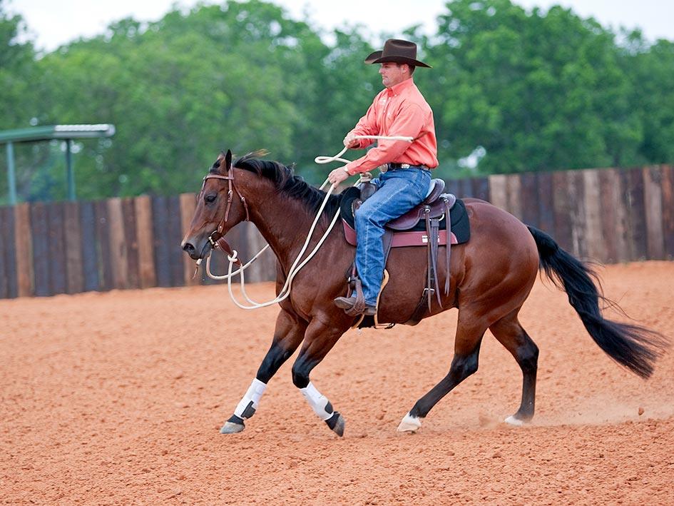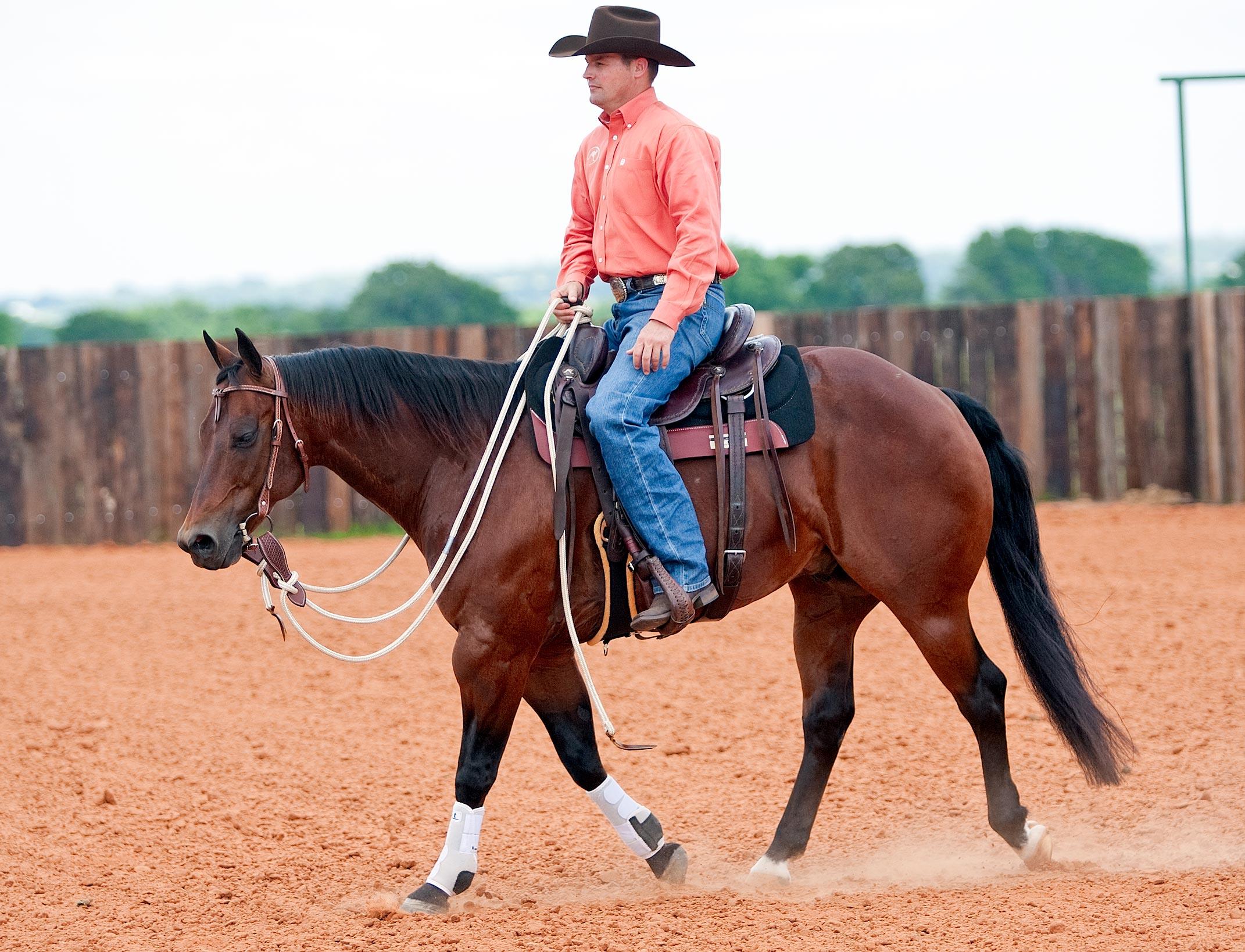 Just like everything we do with horses, the teaching stage of training the horse to move forward off leg pressure looks nothing like the finished result on a well-broke horse, but in order to achieve that goal you’ve got to start with the basics. I teach horses to move forward off my leg cue with the Fundamentals exercises One Rein Stops and the Cruising Lesson. In both exercises, you teach the horse to move forward using three separate cues: Squeeze, cluck and spank.